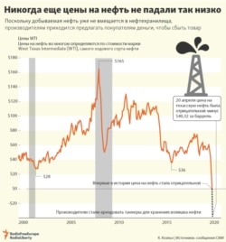 В понедельник впервые в истории торгов на американских биржах цена майских фьючерсов на техасскую нефть WTI была отрицательной. То есть продавцы фактически предлагали деньги покупателям, готовым принять их нефть в ближайшее время. По словам экспертов, это, скорее всего, был уникальный эпизод, производное специфики работы финансовых рынков. Тем не менее он может быть предвестником дальнейшего падения мировых цен на нефть.