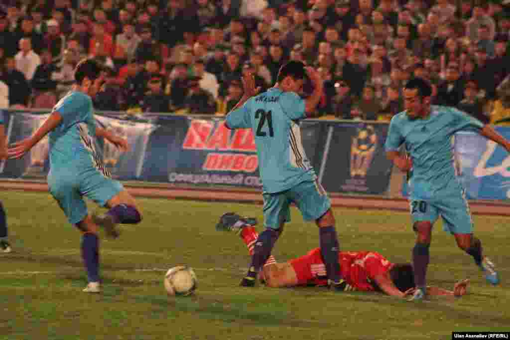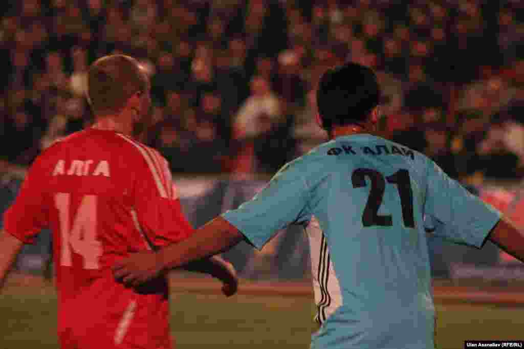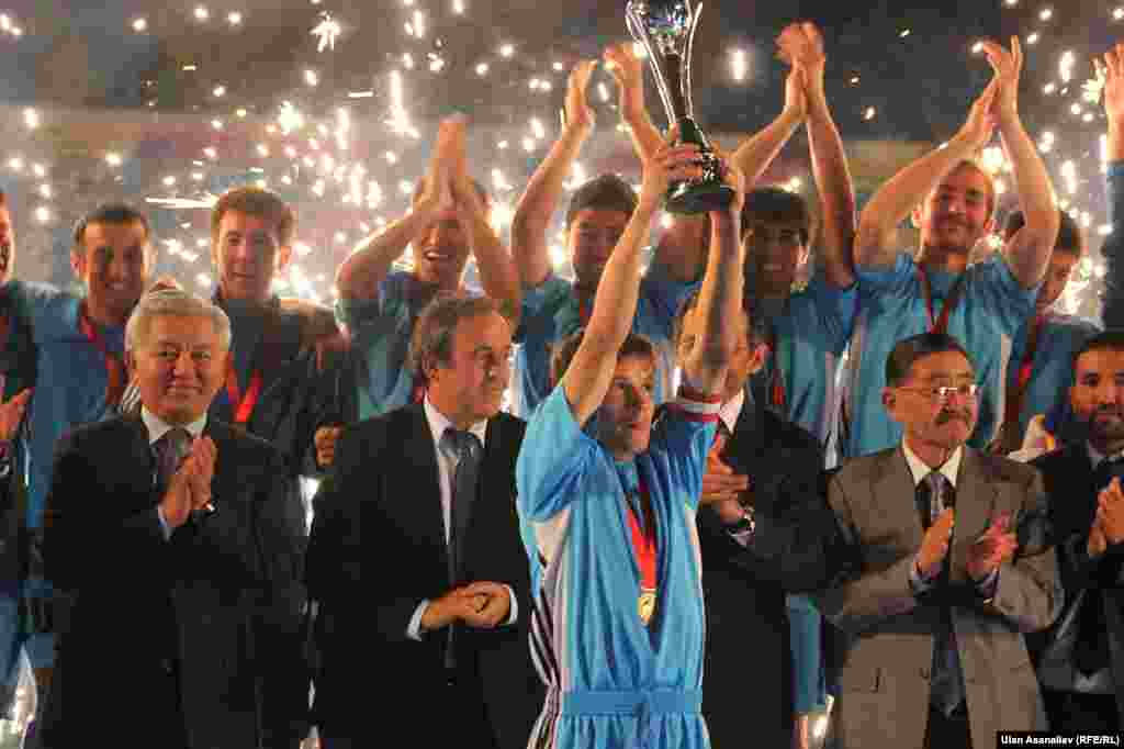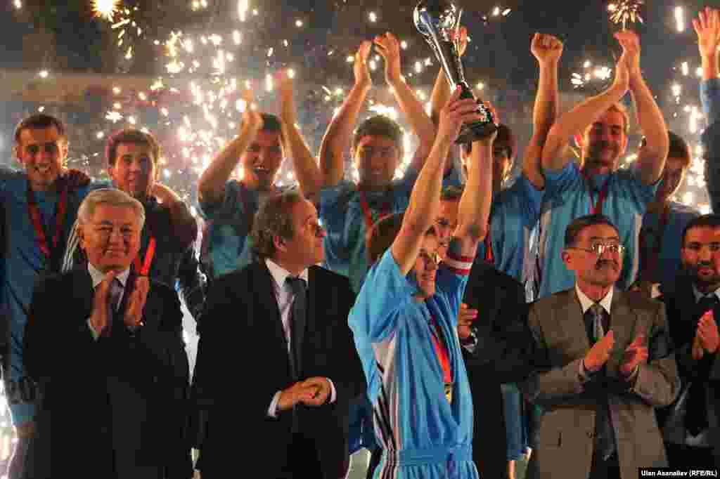 Футбольный матч между командами «Алай» (Ош) и «Алга» (Бишкек), который состоялся 9 октября в Бишкеке, закончился со счетом 7:5. Победу одержали ошане. Первый «Кубок Легенды» победителям вручил лично президент УЕФА, легендарный в прошлом французский футболист Мишель Платини. Фотогалерею подготовили Алмас Ысман, Улан Асаналиев, "Азаттык", Кыргызская служба РСЕ\РС