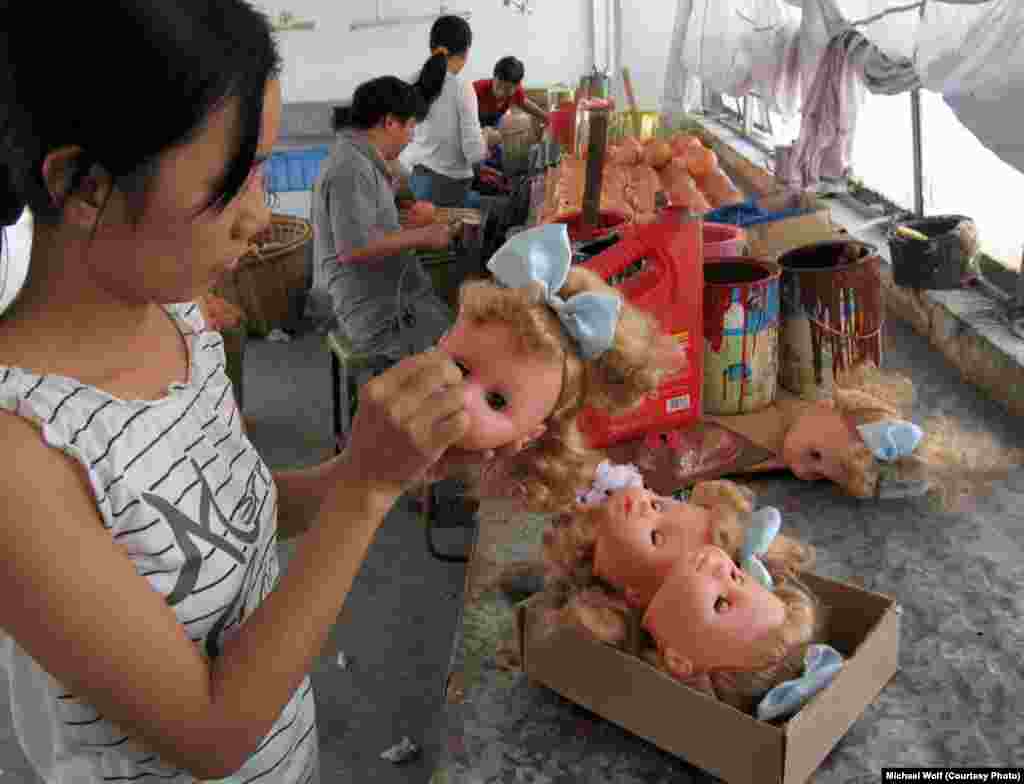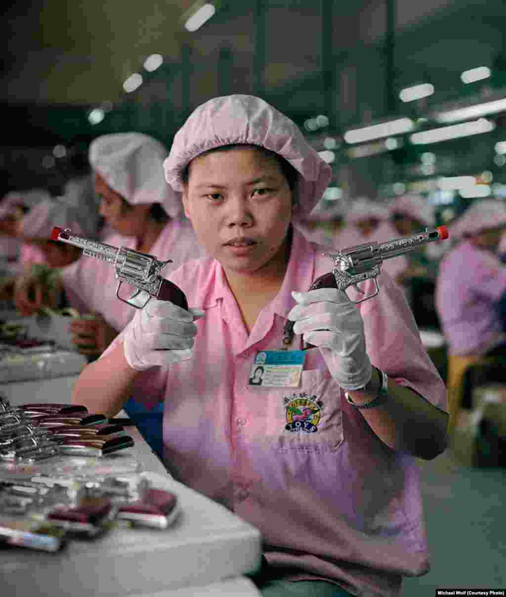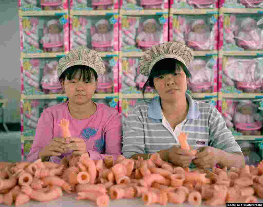 В Китае производится самое большое число игрушек в мире. В процентном соотношении, эта страна является производителем 75 % игрушек всей вселенной. На фабриках, по производству игрушек в Китае, которые работают по шесть и семь дней в неделю, всего несколько женщин могут выйти на декретный отпуск по рождению ребенка. Производство игрушек также сопряжено с рисками контакта с химически вредными веществами, что повышает риск получения травм и ранений во процессе производства. Немецкий фотограф Майкл Вульф посетил пять фабрик по производству игрушек в Китае и зафиксировал условия работы и производства на этих заводах. Русская служба РСЕ\РС